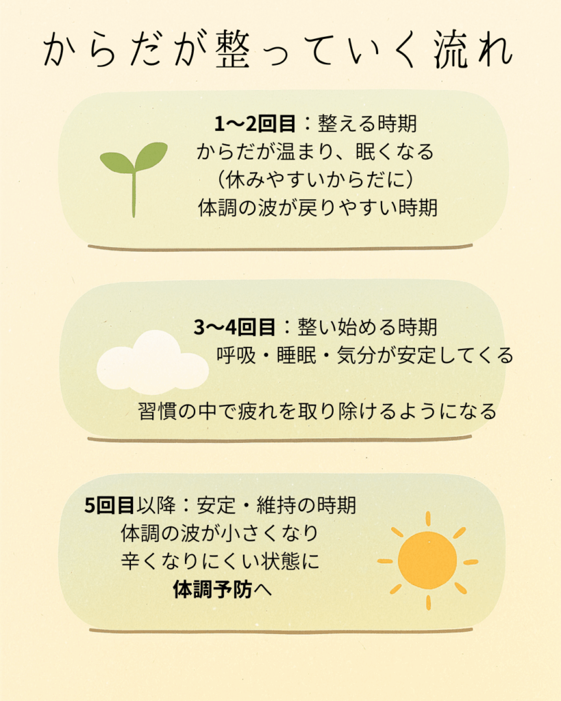 当院では「からだが少しずつ回復し、安定していく自然な流れ」を大切にしています。